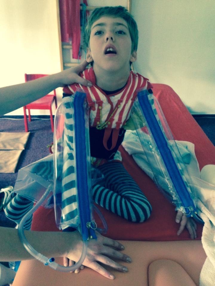 Nekorektní postavení a držení těla pacienta způsobuje nesprávnou propriocepci a pomocí Therasuit obleku může být korigovaná do správné pozíce. Patologické vjemy jsou tak nahrazeny správnými.